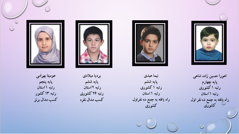 برگزیدگان برتر المپیاد معمای ریاضی و هوش (مبتکران) دبستان آبانگاه در سطح استانی و کشوری سال تحصیلی ۹۷-۹۸